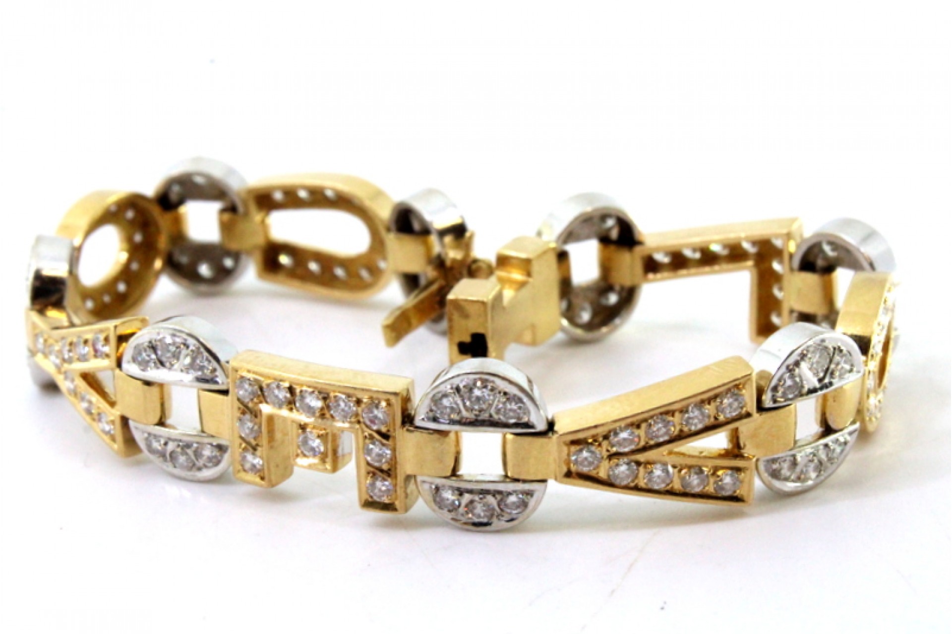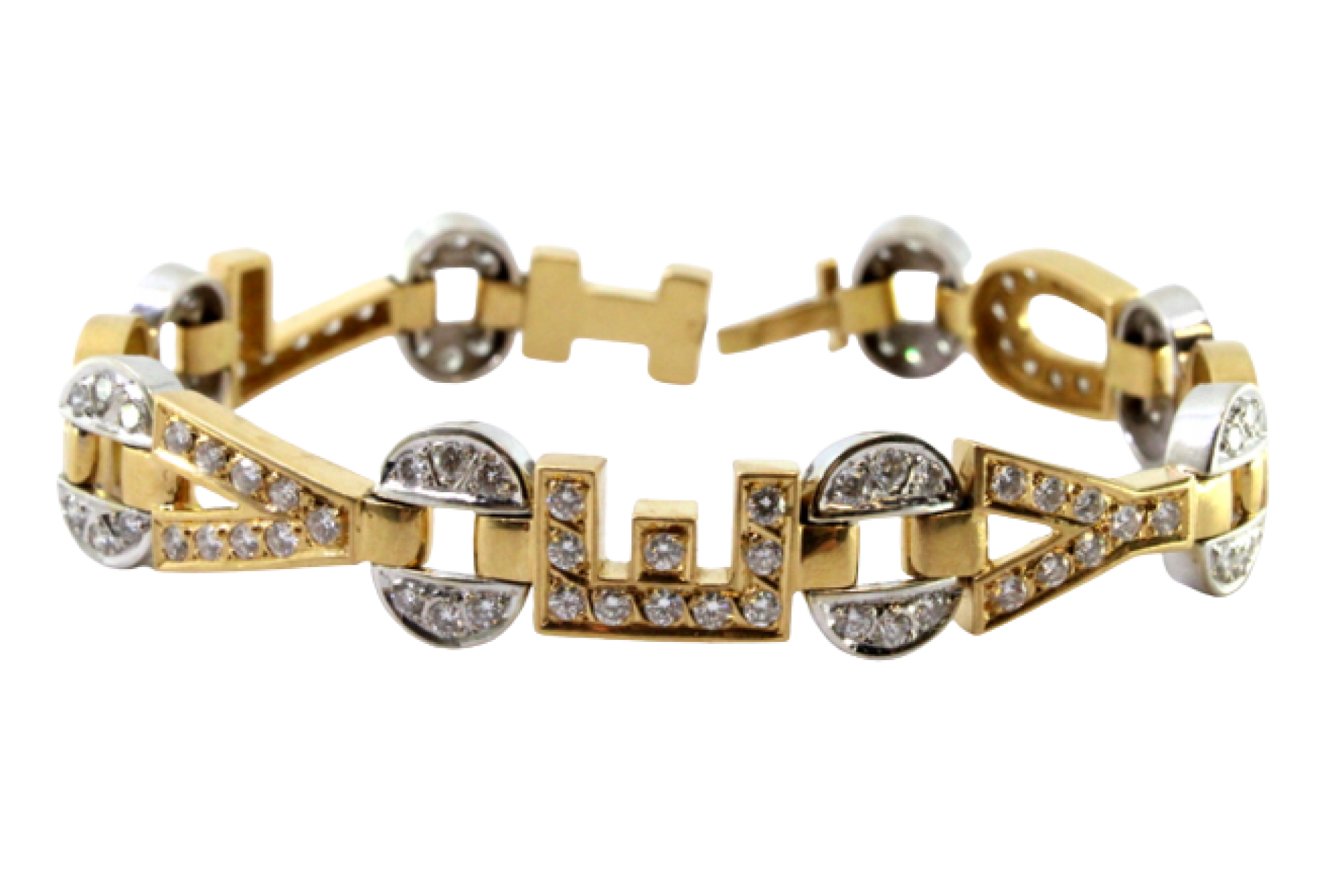 Pulseira em ouro bicolor com 128 diamantes em talhe brilhante