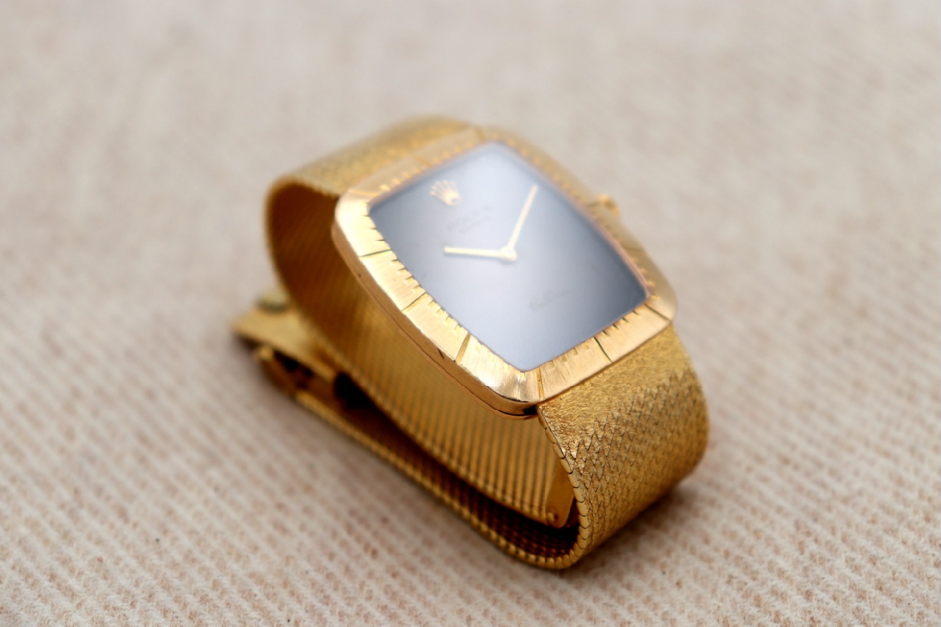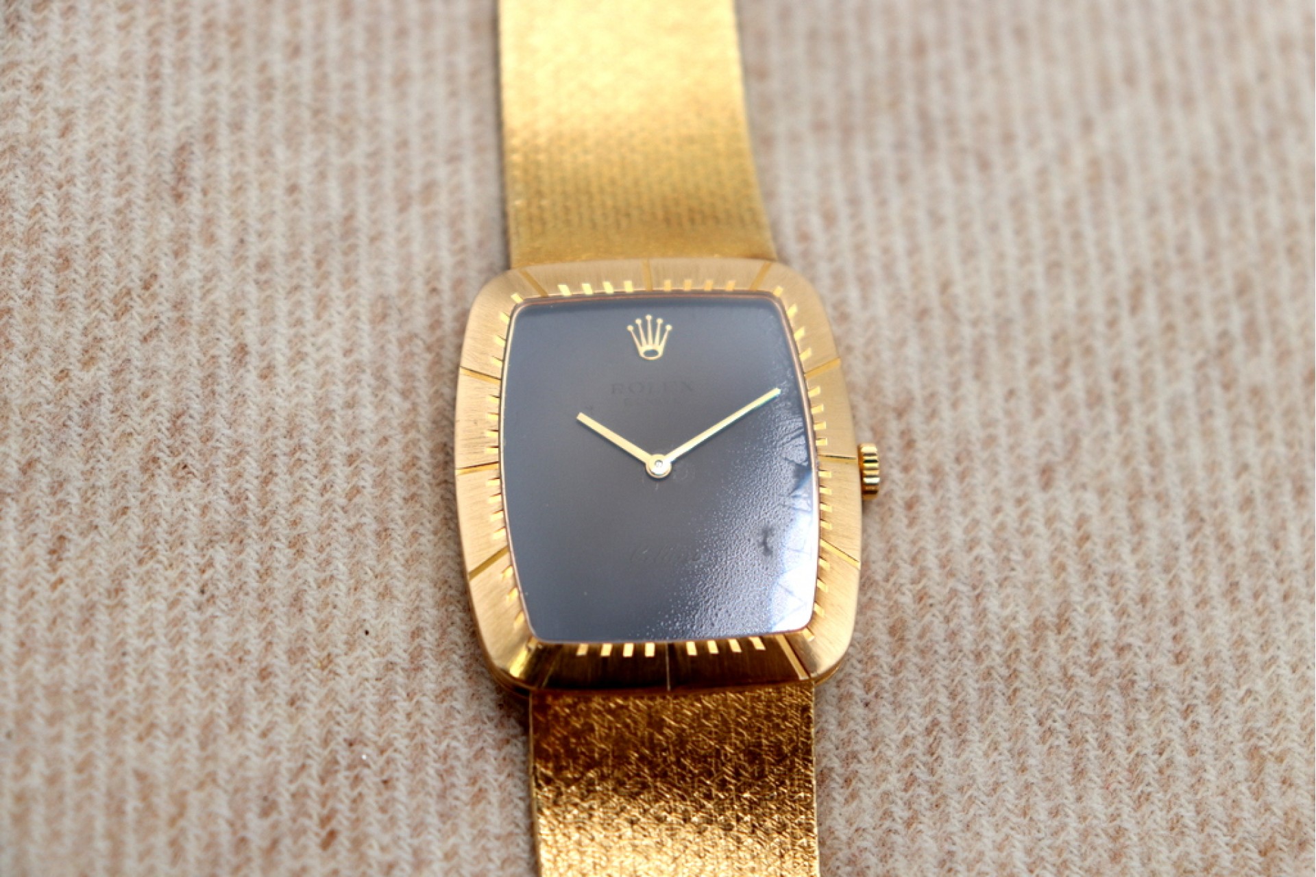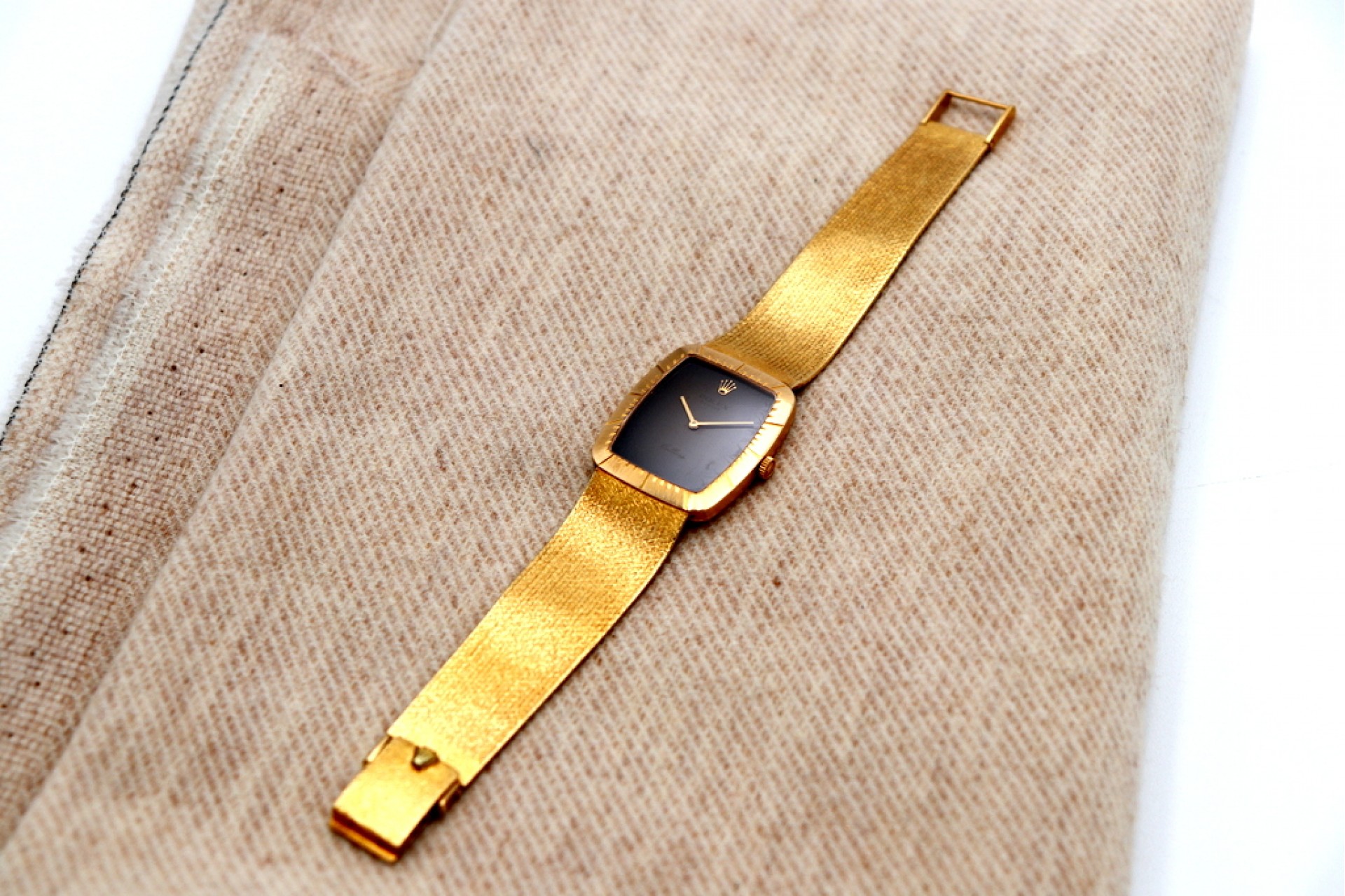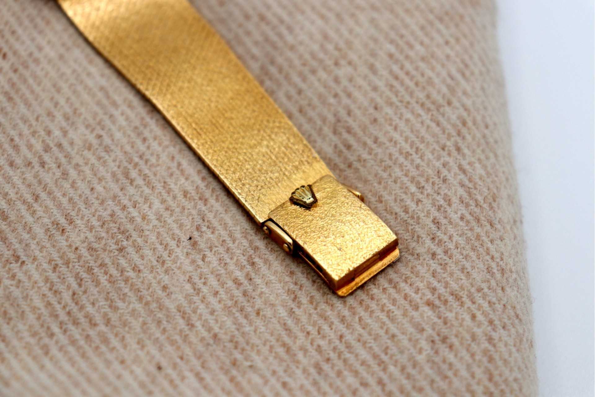 • Descrição: Relógio de pulso em ouro Rolex com movimento mecânico de corda.
