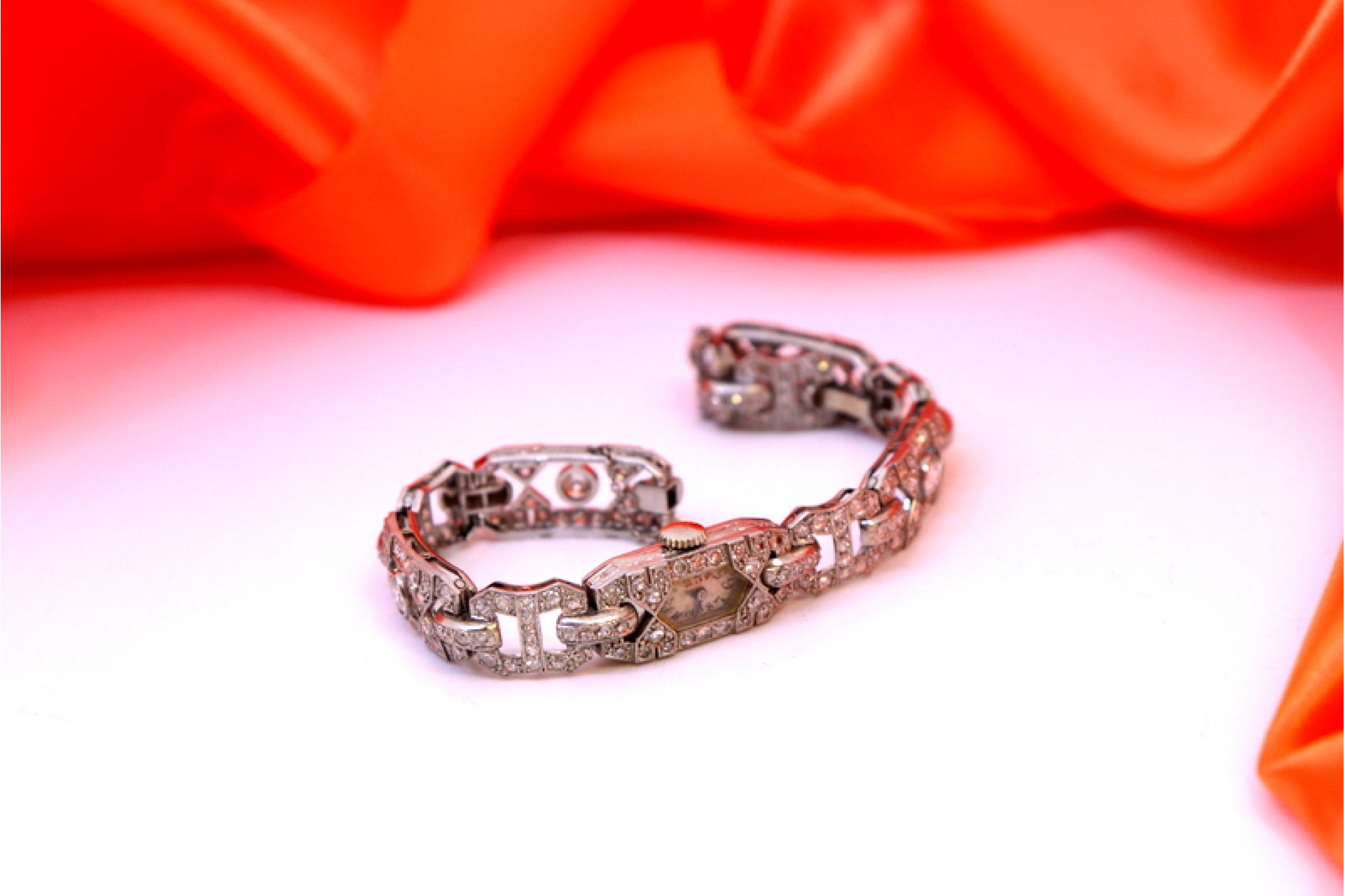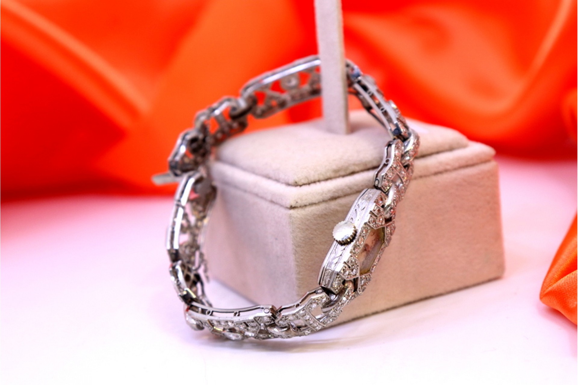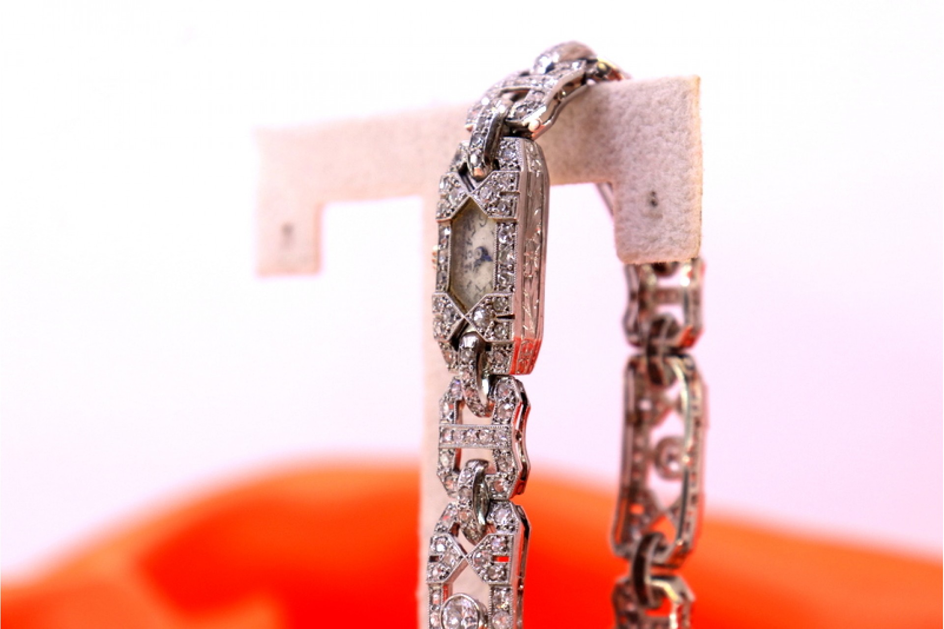 Relógio de toilette em platina ao estilo Art Decô com diamantes