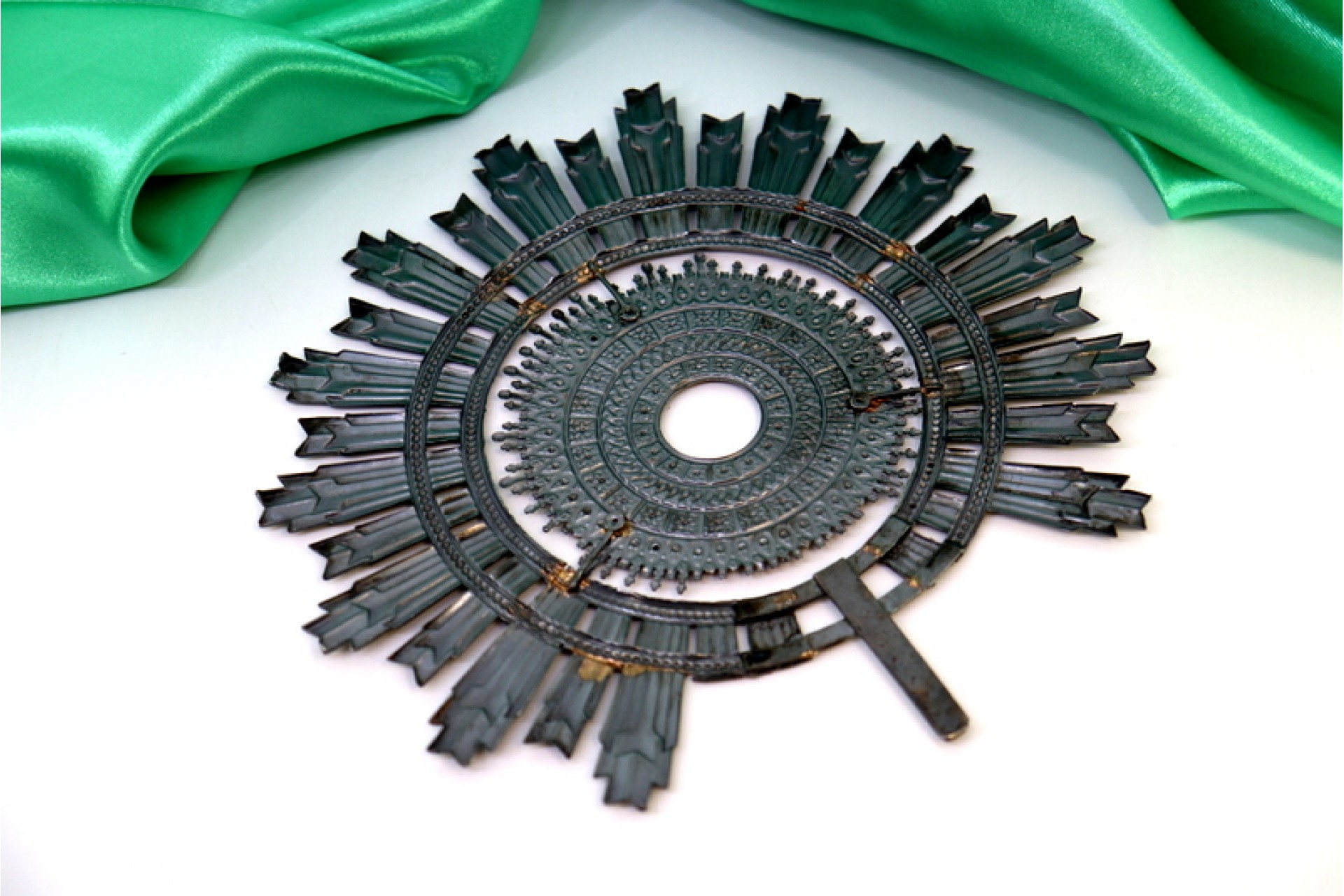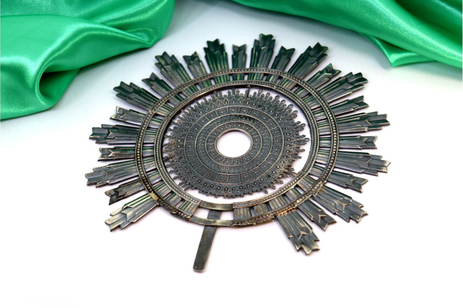 • Descrição: Resplendor em prata simbolizando o Sol e os seus raios com relevos em forma concêntrica.