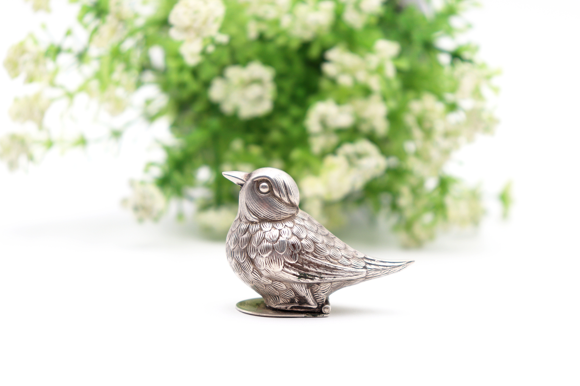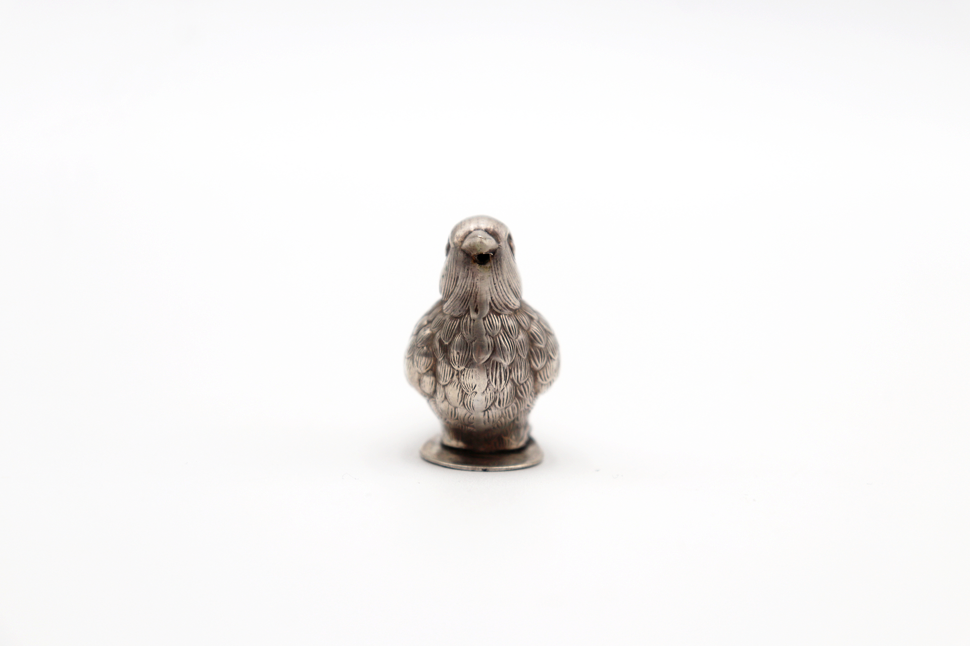Saleiro ou pimenteiro de prata em forma de pássaro