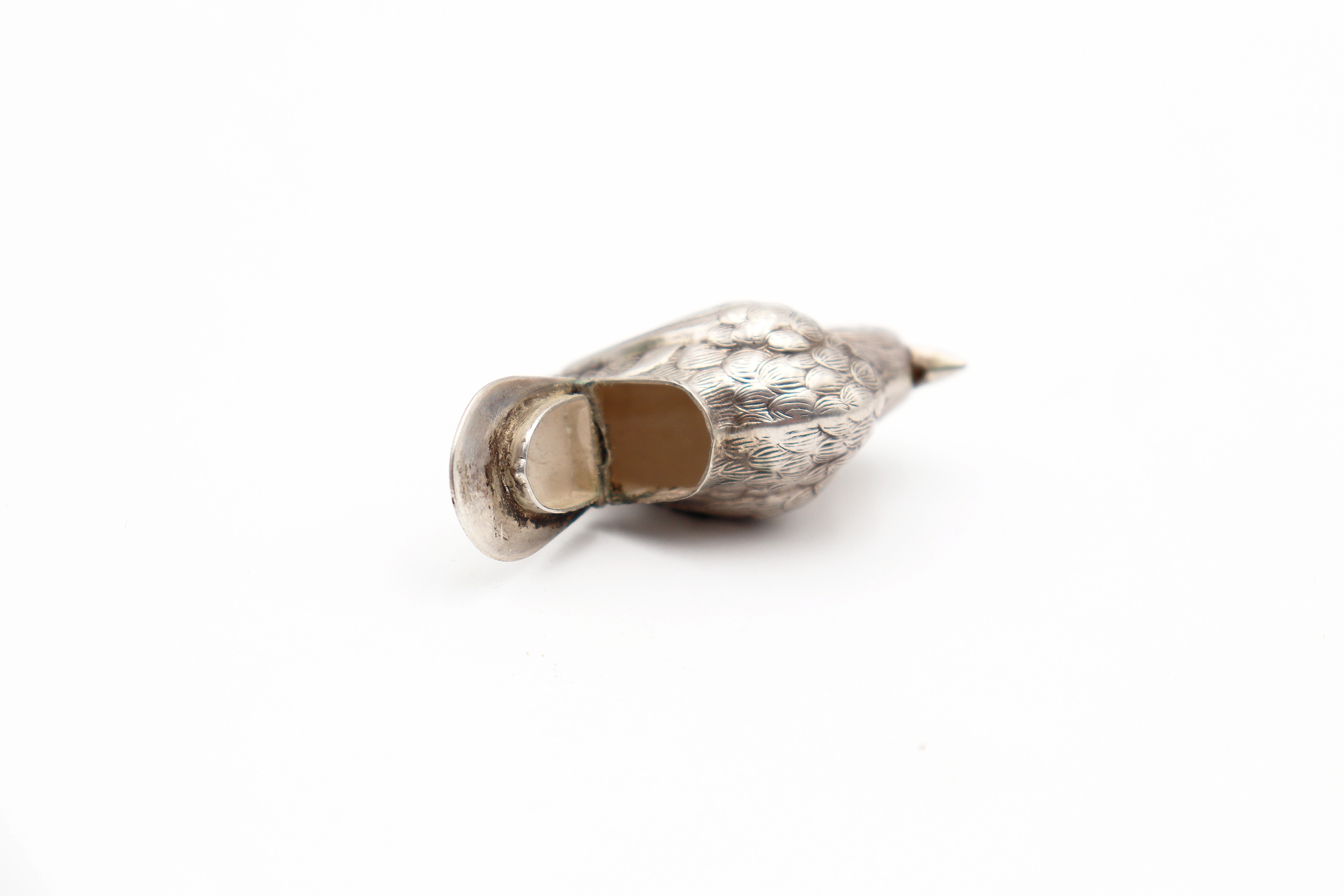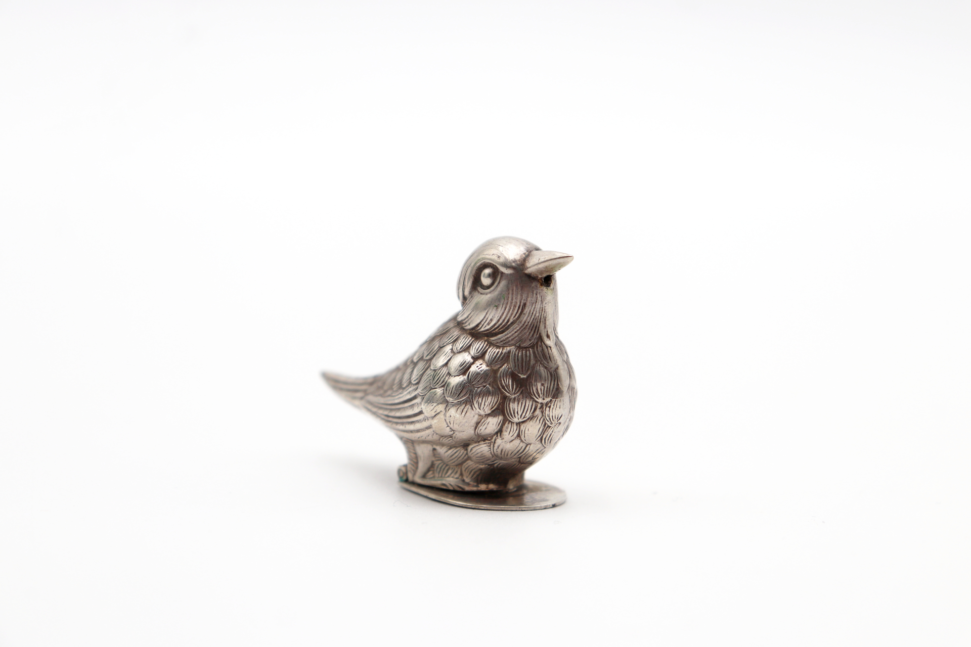 • Descrição: Saleiro ou pimenteiro de prata em forma de pássaro.