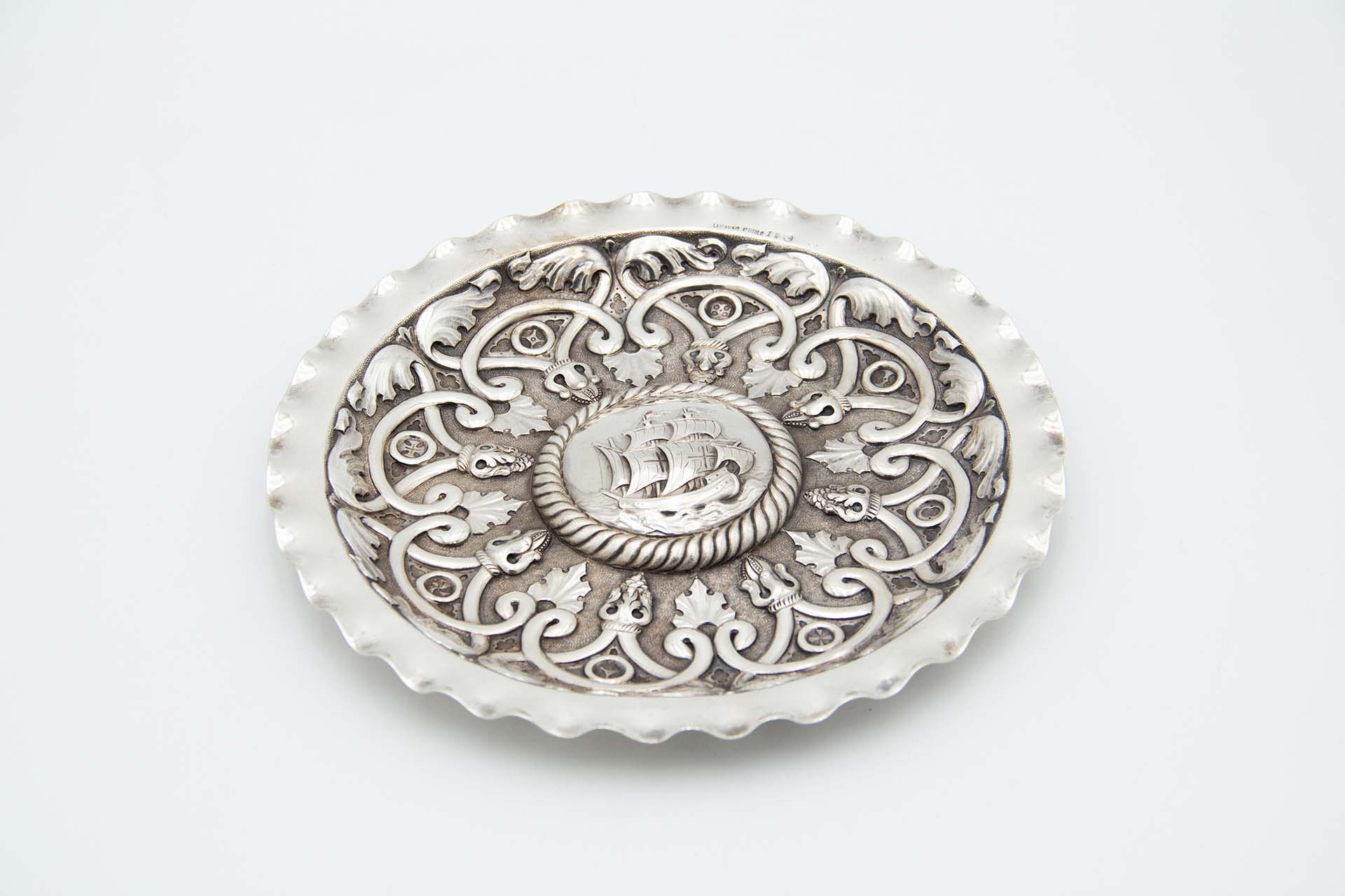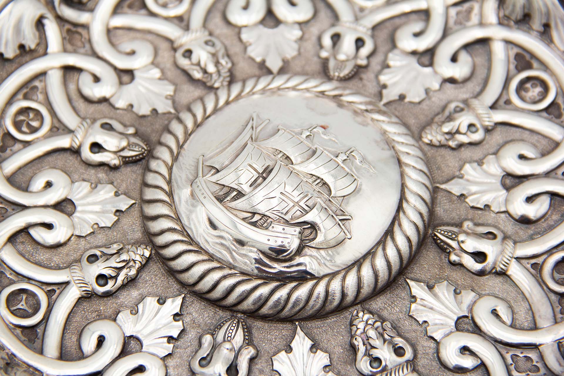 Etiquetas: Prata, Salva, Circular, Relevos, Caravela, Portuguesa, Descobrimentos