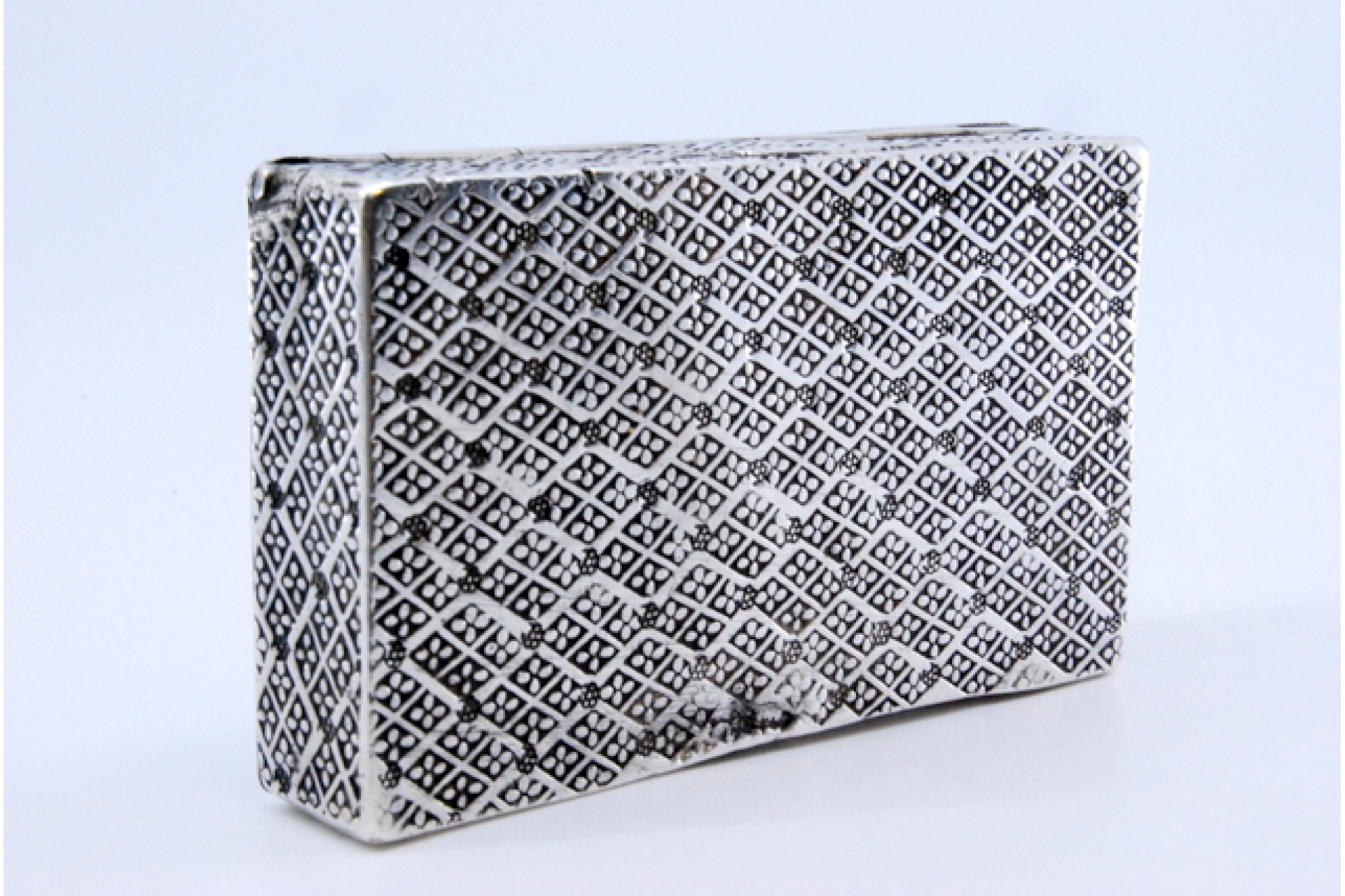 • Descrição: Caixa de rapé em prata com flores e ramos gravados com tampa basculante.