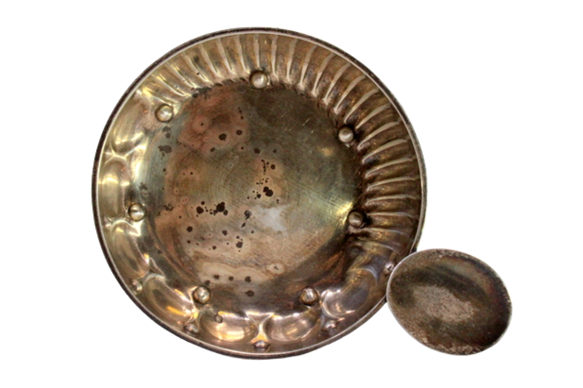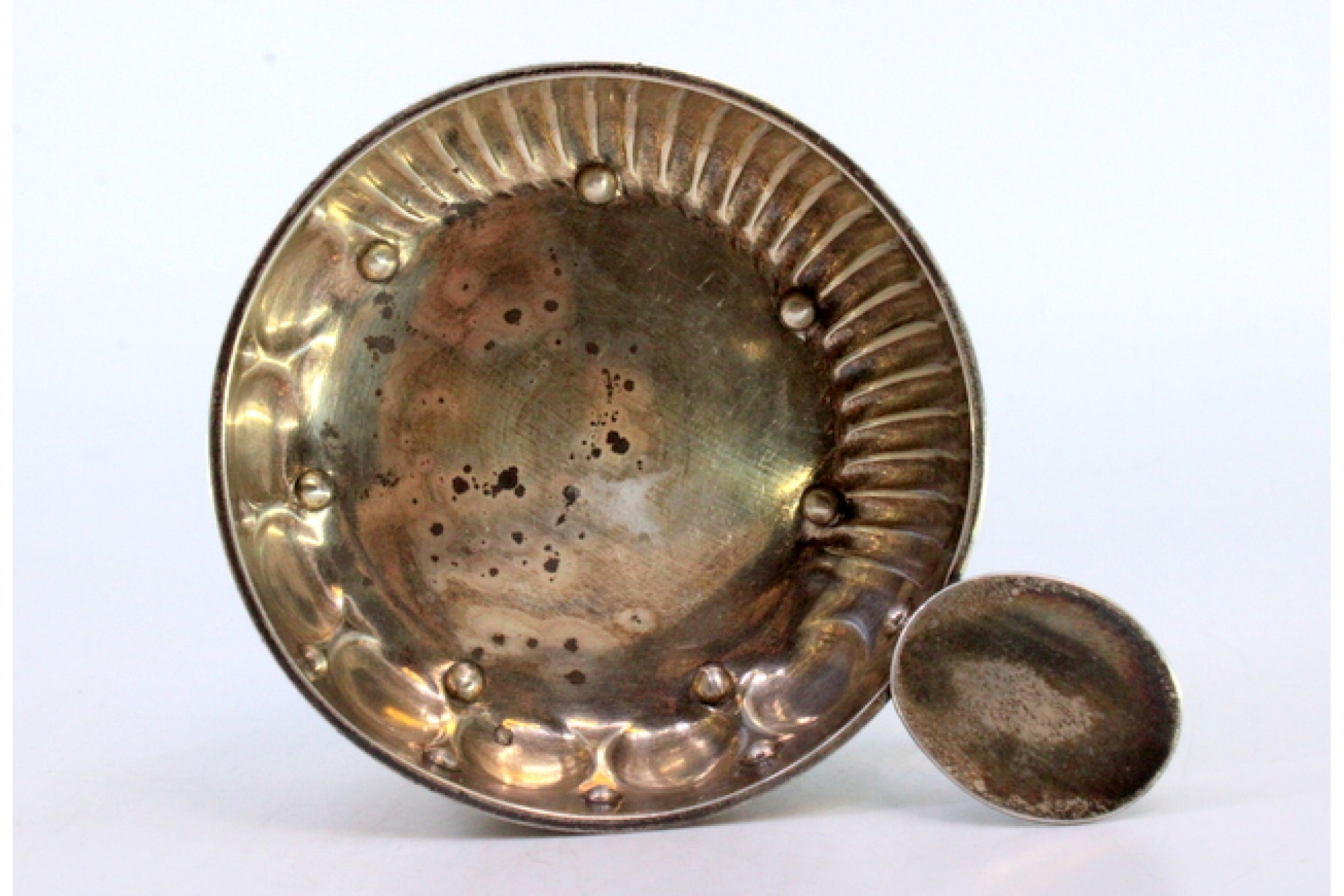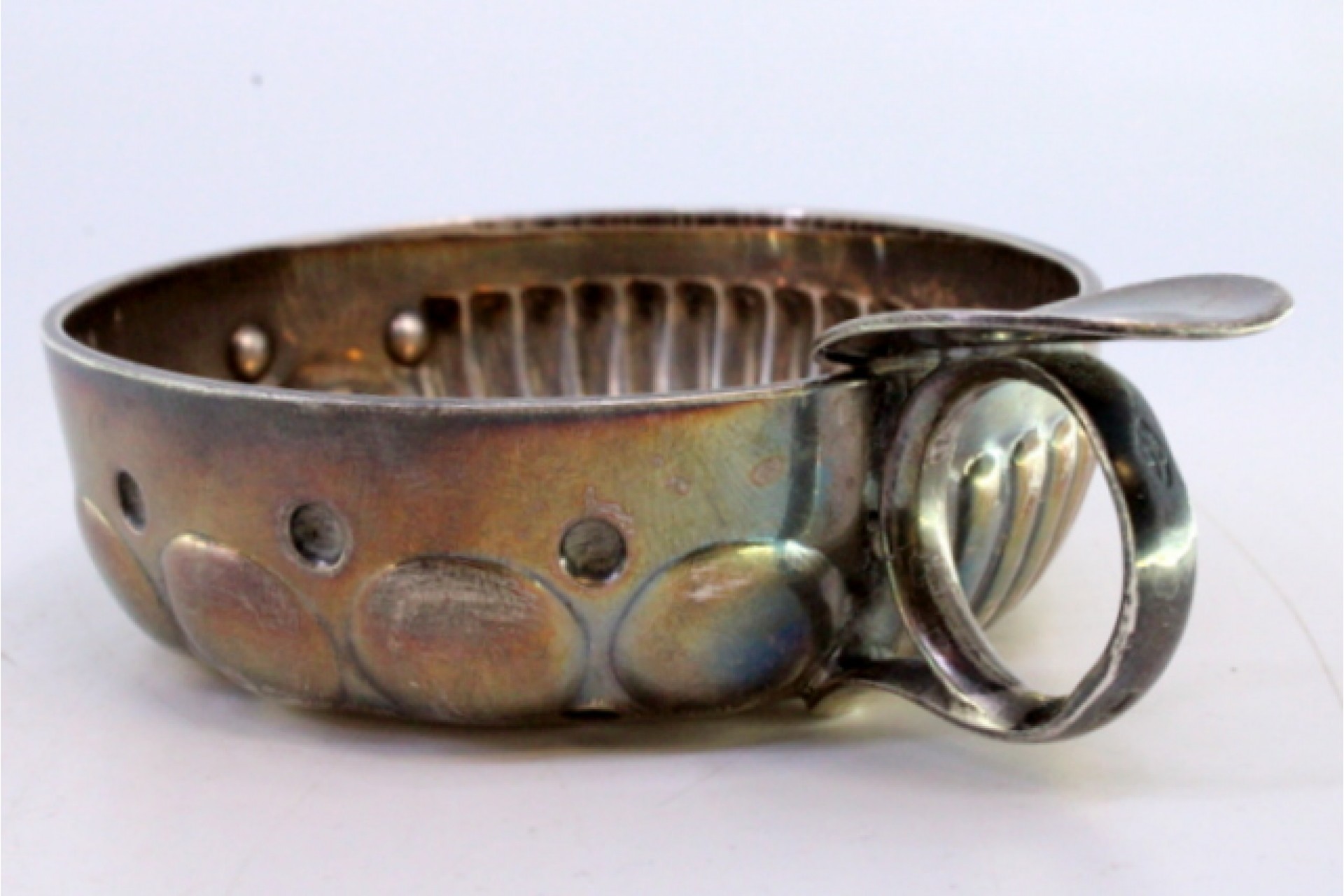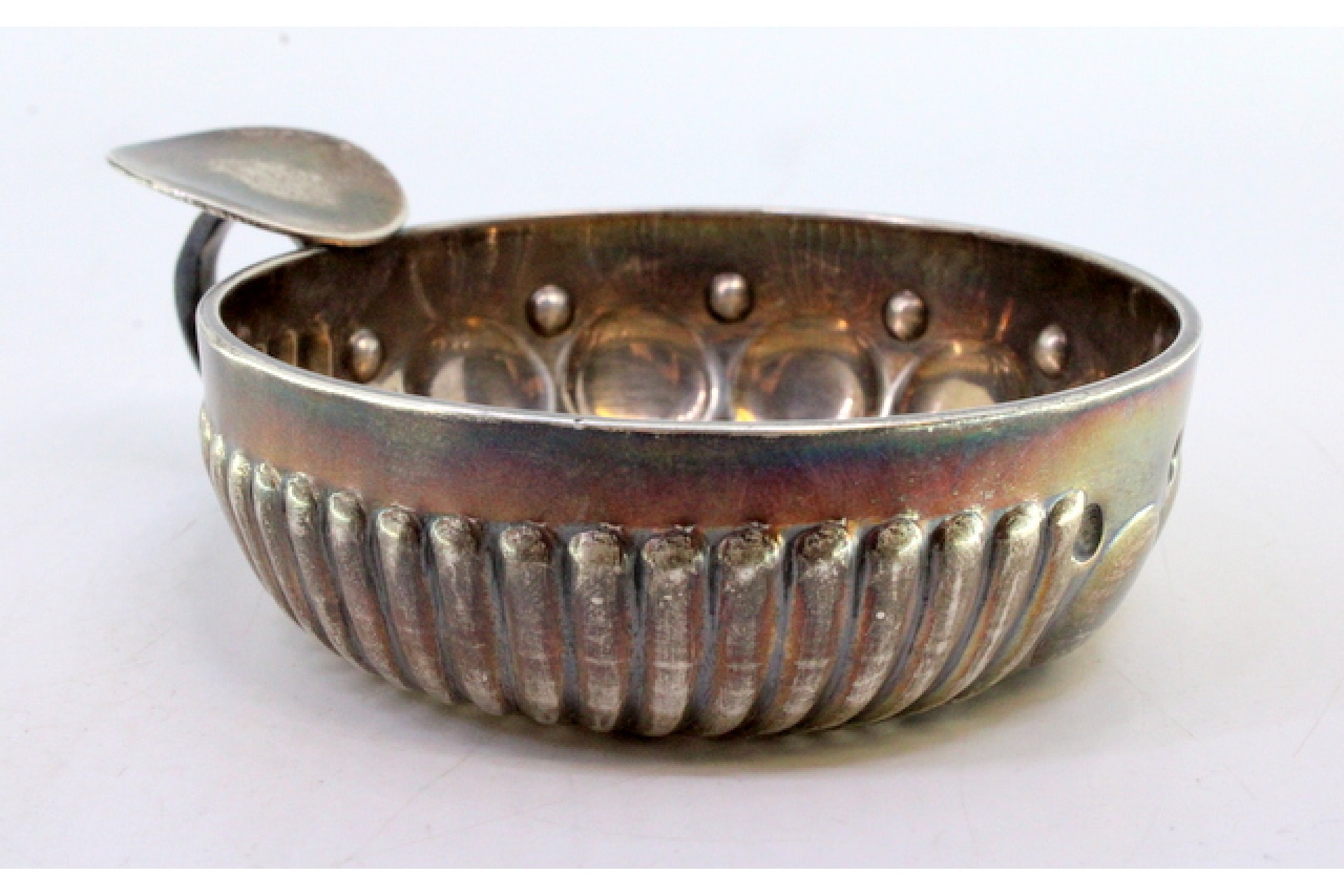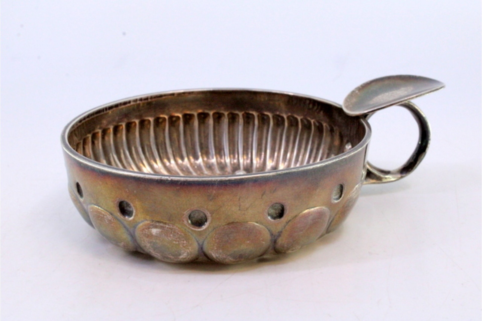 Taça de prata canelada para prova de vinho.