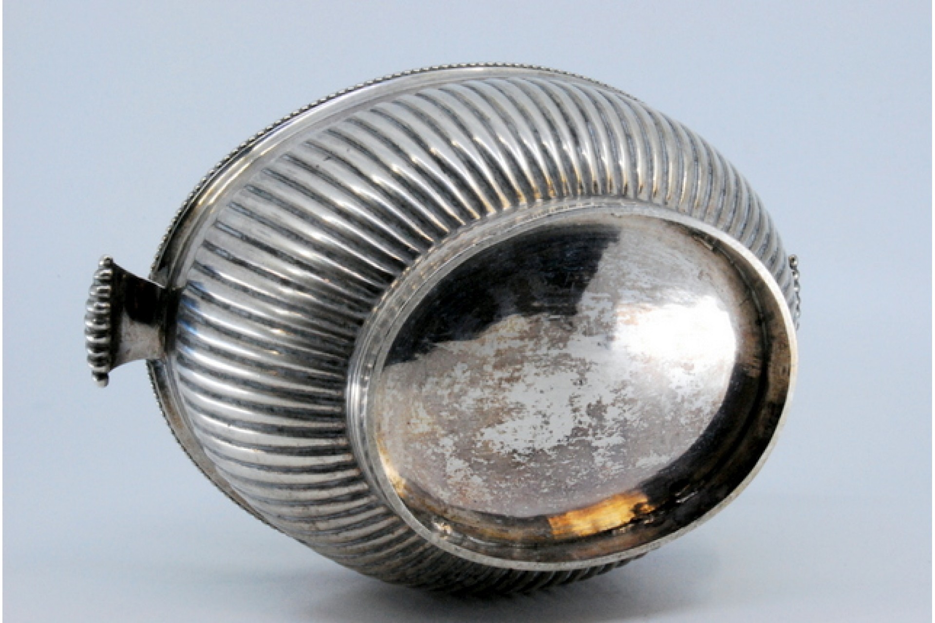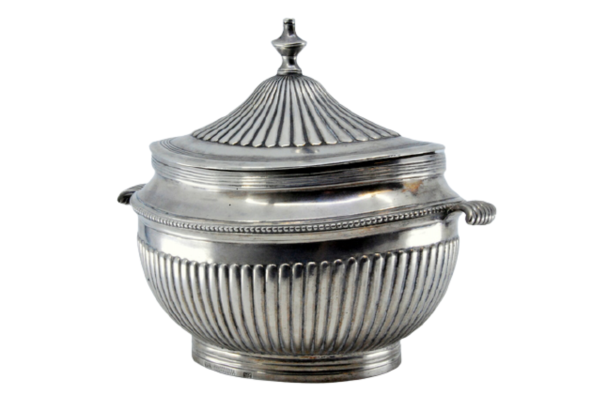 • Descrição: Açucareiro em prata canelada, friso perlado e pomo na tampa amovível.