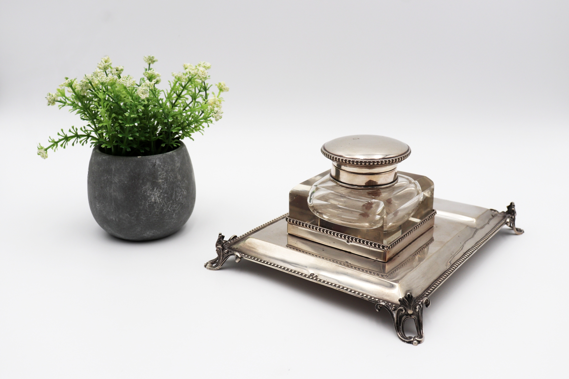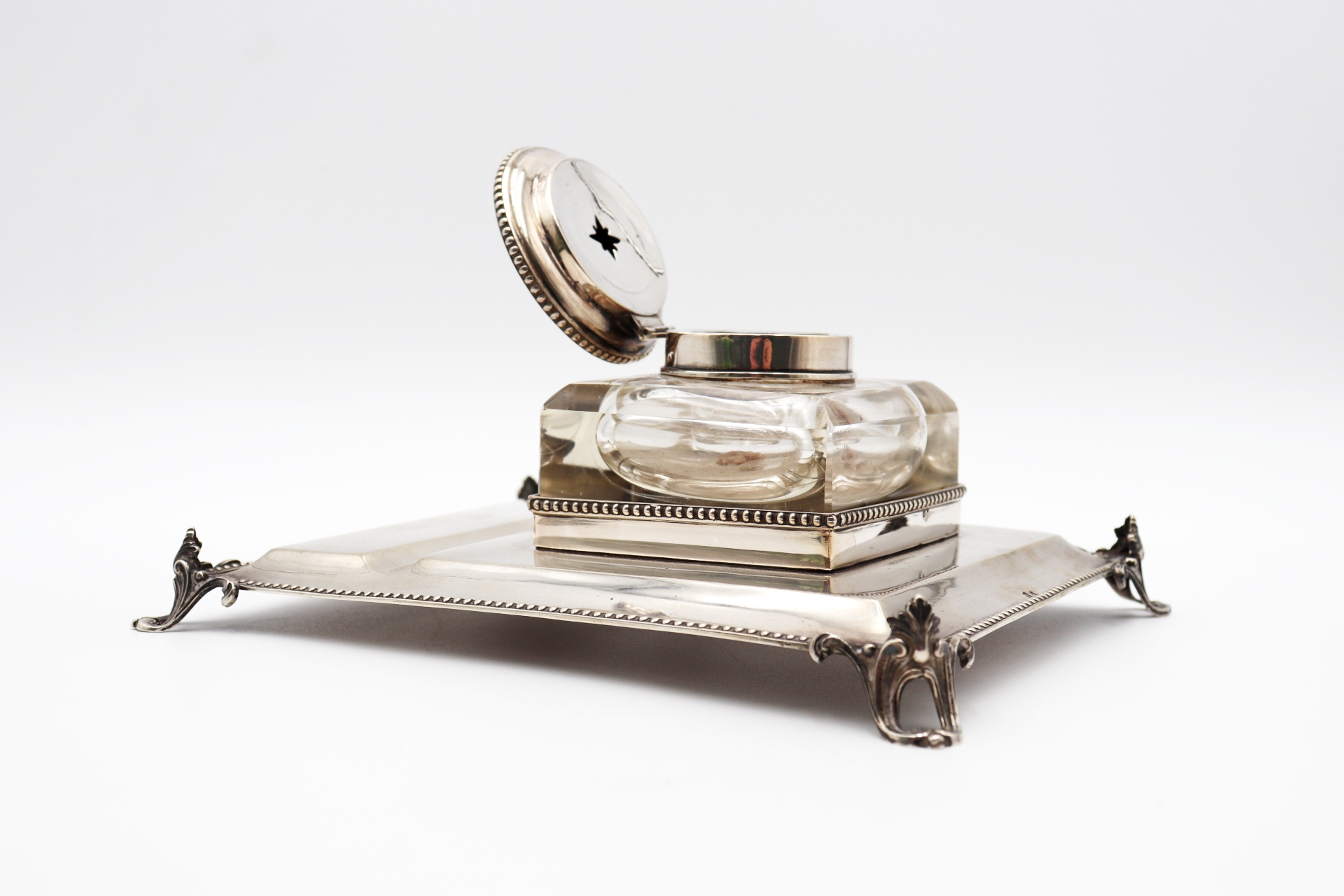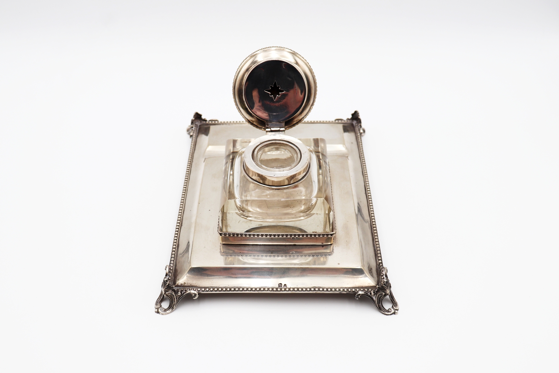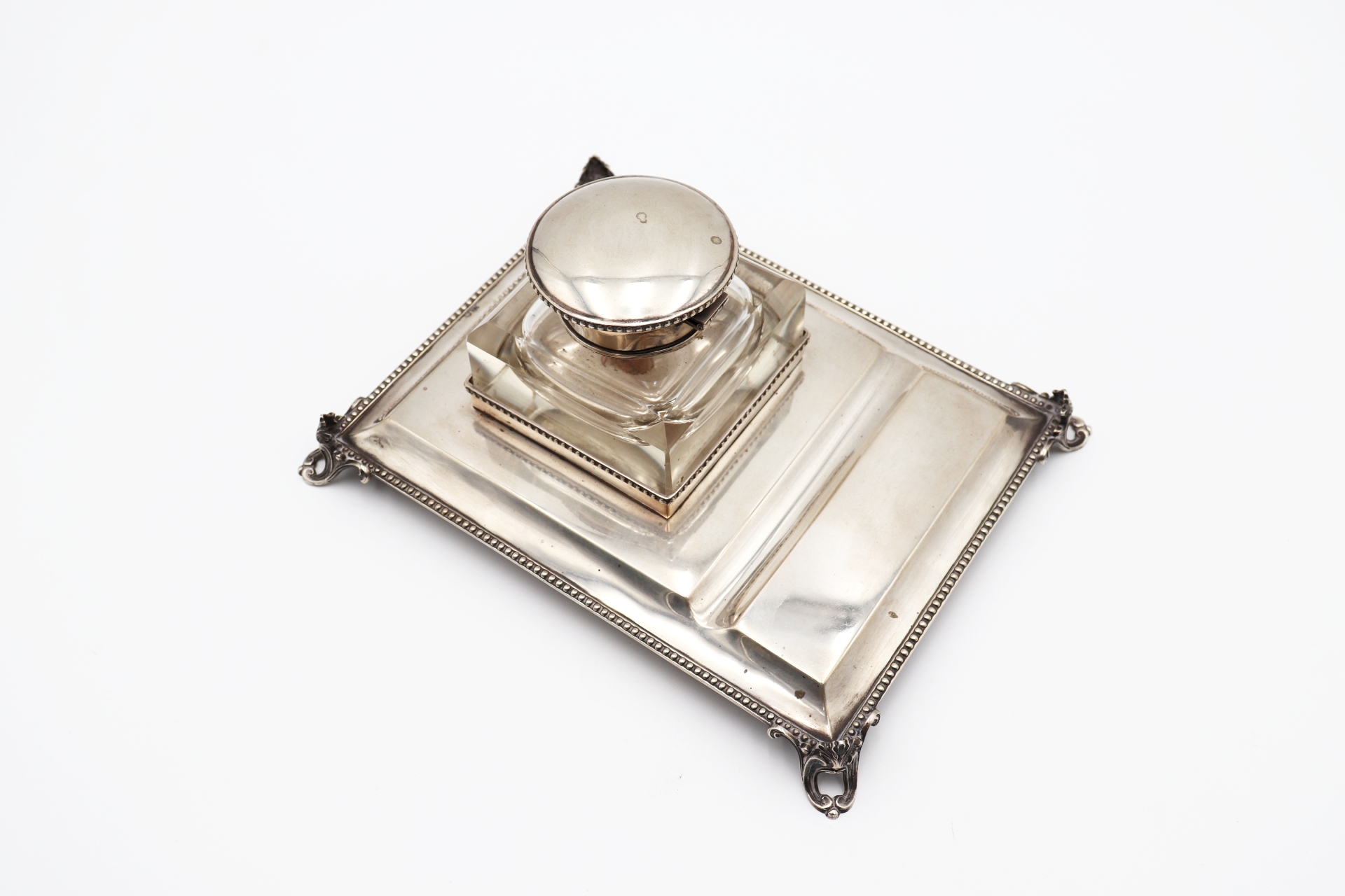 Etiquetas: Tinteiro, prata, depósito, friso, perlado