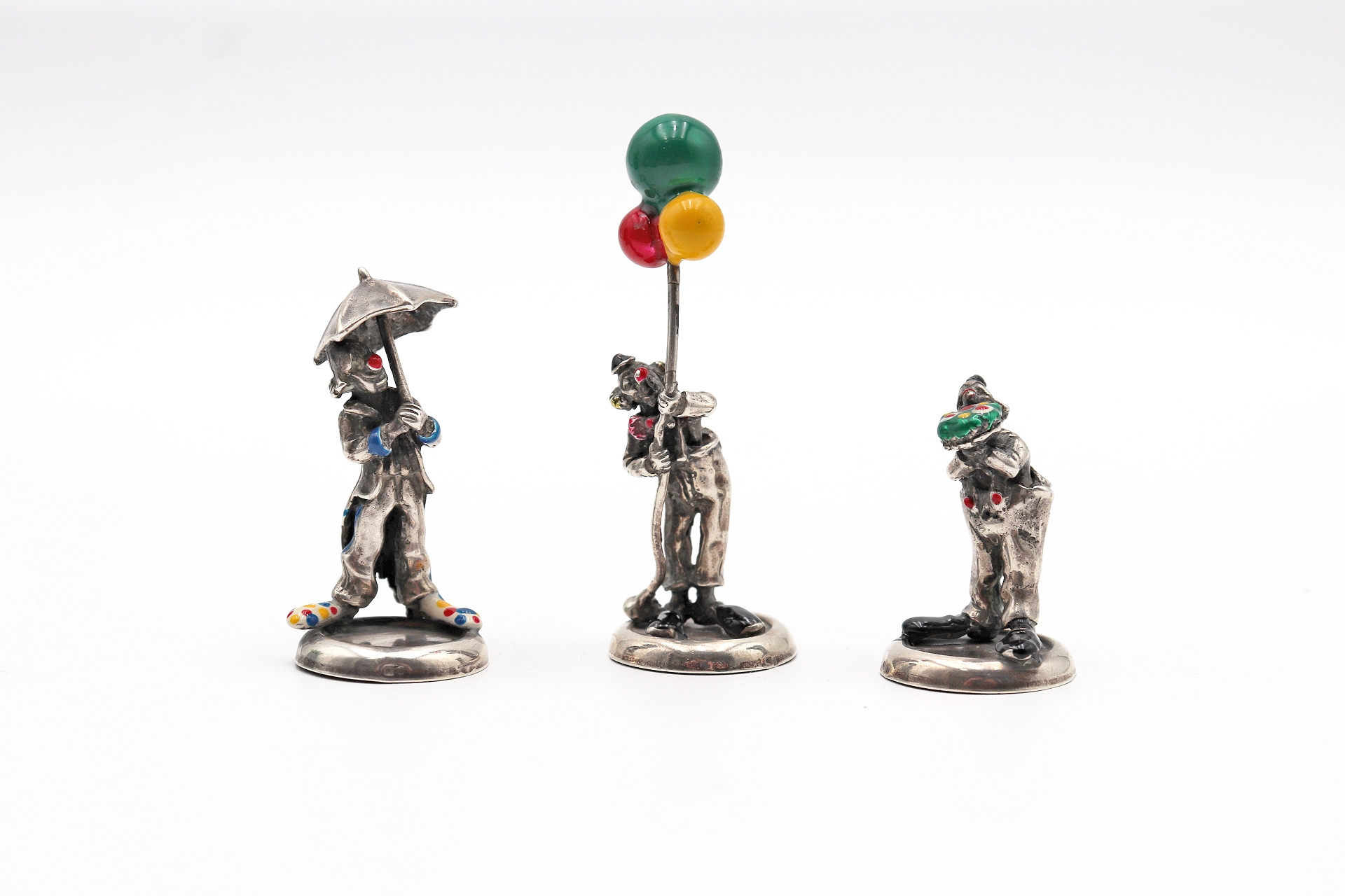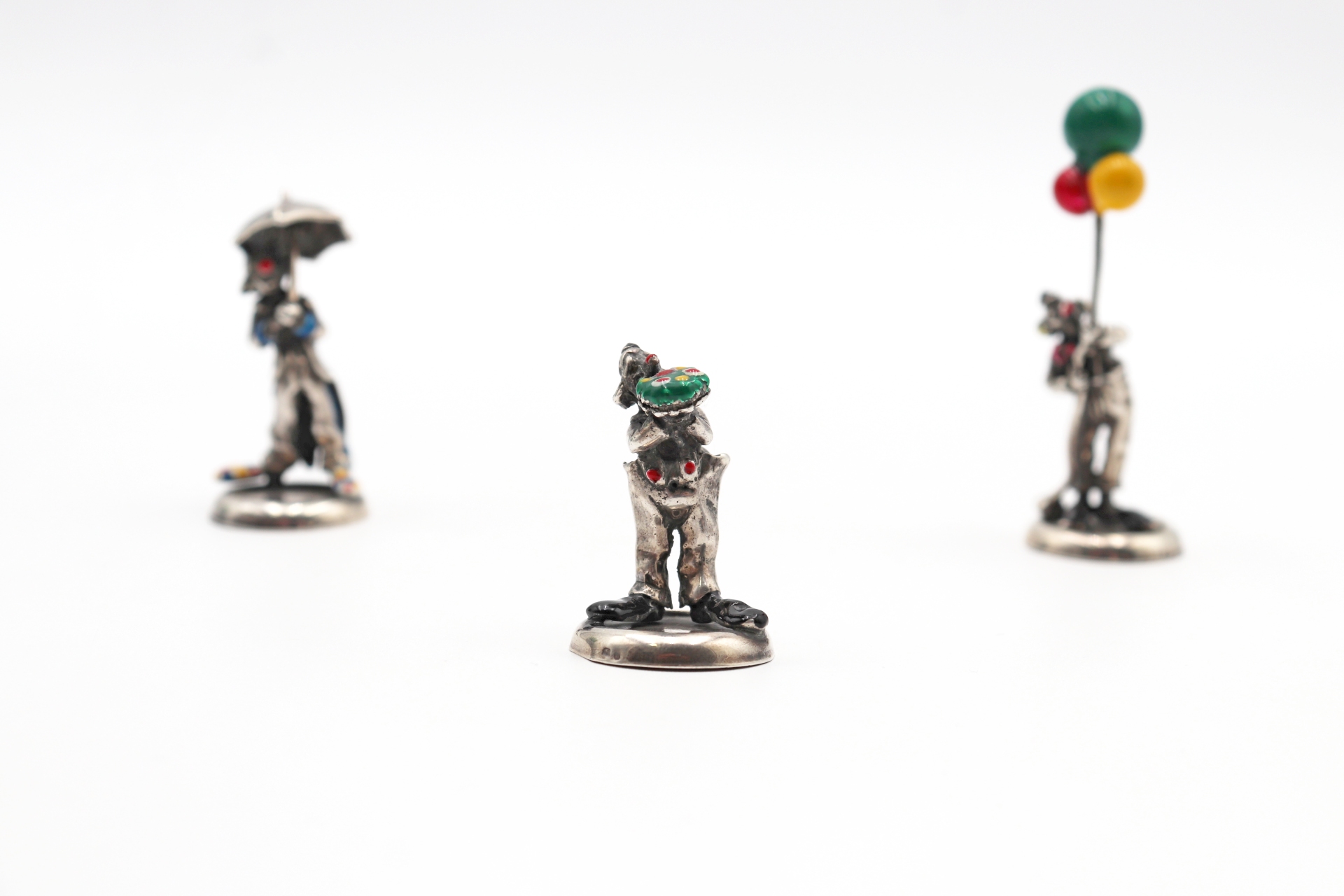 • Descrição: Trio de palhaços miniatura em prata com bases circulares.